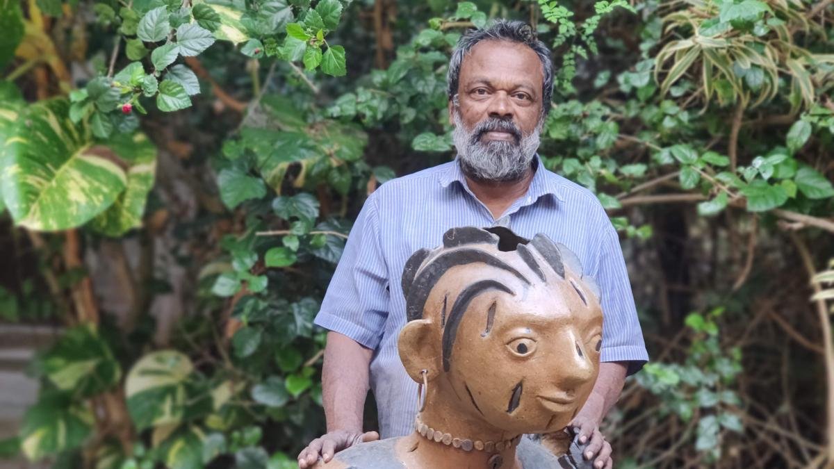 जी रेघु अपनी एक मूर्ति के साथ | फोटो साभार: विशेष व्यवस्था जी रेघू द्वारा तैयार की…